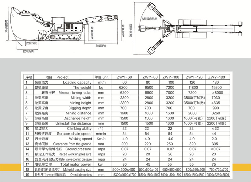 配备三节臂(带破碎锤)后,可适用于煤巷掘进、煤巷开口、半煤岩巷掘进快速出渣,三节臂装载机能弥补标准的两节臂装载机工作不到的死角,增加工作范围。